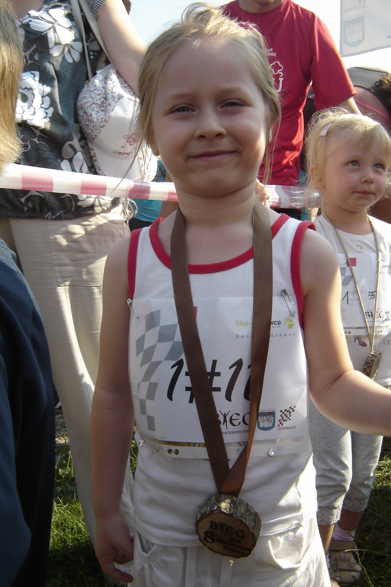 10:00 i start biegu głównego na 15km spod hali sportowej aby po chwili znaleźć się w Puszczy Kazimierskiej która dała biegaczom sporo cienia ale dostarczyła też wielu urozmaiceń, takich jak falujące podbiegi a zarazem i zbiegi, ubite leśne dukty oraz miękkie piaszczyste odcinki po których biegło się jak po plaży, korzenie kamienie i wiele innych atrakcji dzięki którym każdy biegnący napracował się bardziej jak na niejednym krótszym biegu. Bardzo ładny był odcinek przy jeziorze Głodowskim, a później już tylko ciche leśne długie proste aż do mety, na której czekał wyjątkowy medal. Atmosfera wkoło biegu była bardzo przyjazna, wszyscy dopingowali każdego biegnącego co motywuję do ostatniego wysiłku przed metą.