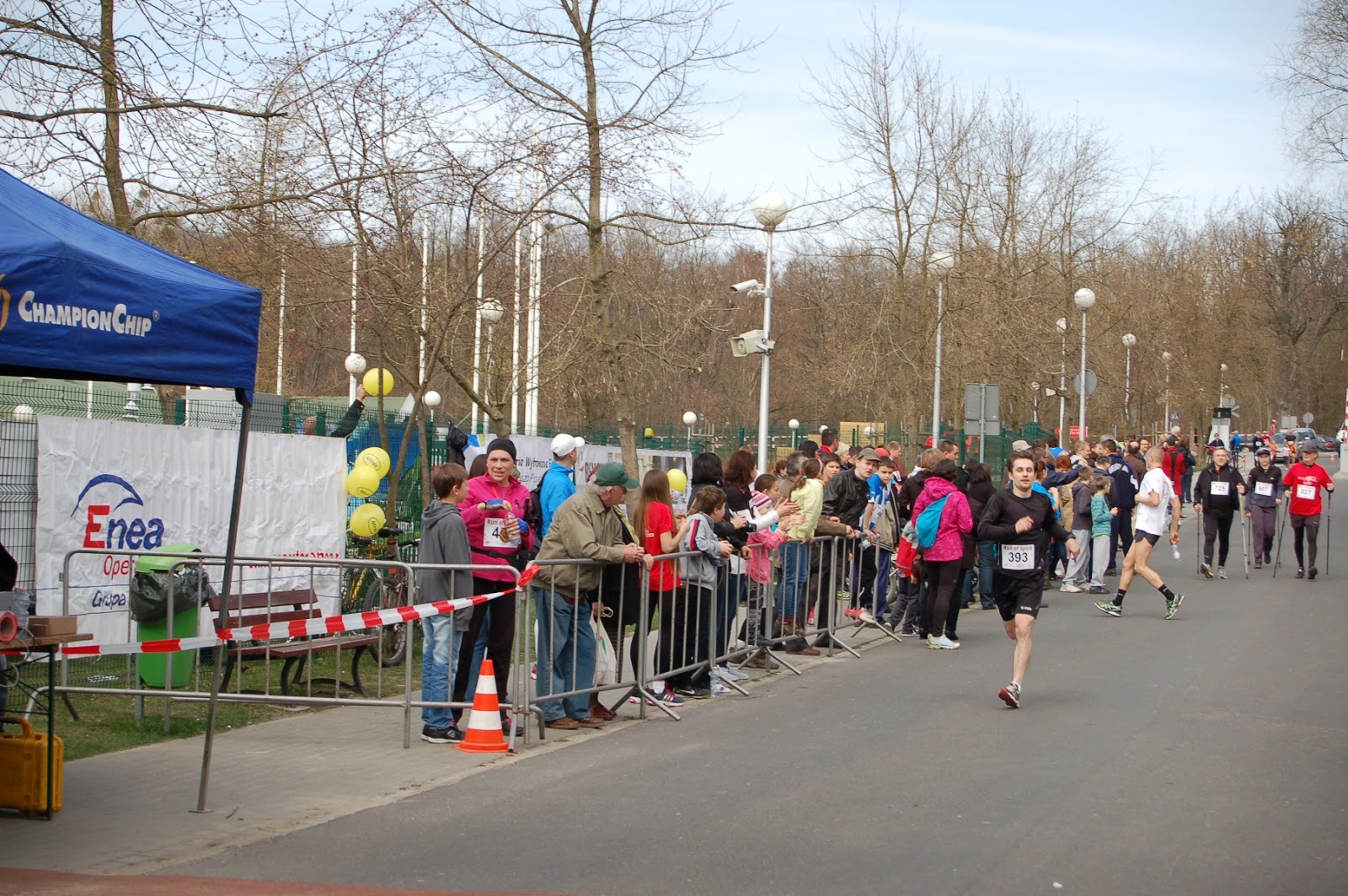 Punkt 12:30 i jednoczesny start dwóch biegów "Fun Run" (5,7km - jedno okrążenie jez. Malta) i "Run of Spirit" (11,4km - dwa okrążenia), przesuwam się do przodu wśród około 300 biegaczy, choć widać że zbytnio nikt nie kwapi się by prowadzić bieg jak to było rok temu, pewnie "zawodowcy" wyczaili że nie ma nagród pieniężnych to nie ma co przyjeżdżać :) a tak poważnie to pewnie Orlen Maraton i inne biegi zrobiły swoje, w każdym razie mnie tu zabraknąć nie mogło. Huk wystrzału i biegniemy wszyscy razem, przeskoczyłem kilka kroków do przodu i biegnę sobie by zejść poniżej 4:50'/km bo tak sobie założyłem aż tu pierwszy 4:23 - no to będzie zaliczka na kolejne wolniejsze myślę sobie, i tak pierwsze 5,7km wraz z podbiegiem chyba 50 stopniowym mija przyjemnie, mijanie mety i kibiców jak zwykle dodaje skrzydeł i znów dobry czas (4:37'/km wliczając podbieg :P), na drugiej pętli minęła mnie trójka biegaczy których się uczepiłem a w szczególności tego ostatniego który przez 5km chyba był zły że się trzymam za jego plecami krok w krok gdyż ciągle się oglądał i oglądał aż mu chciałem powiedzieć spoko nie wyprzedzam Cię, dopiero przed metą to zrobię :). Po 10 km (48:02) nawet łydka która trochę piekła na początku przestała w ogóle boleć i zaczęło mi się biec jak bym przed chwilą zaczął (dlatego też jestem trochę zły że nie potrenowałem przed biegiem bo spokojnie nabiegał bym lepszy czas), wybił 11 km i nadeszła odpowiednia chwila by wyprzedzić mój falochron za którym przebiegłem ostatnie 5 km, muszę powiedzieć że nawet nie podjął walki i tak sobie wleciałem na metę z czasem 54:41 netto i tak jak mówiłem zadowolony w 50% ale szczęśliwy że biorę udział w tak fajnie zorganizowanym biegu i dla tak szczytnego celu, za rok mnie także na tym biegu nie zabraknie.