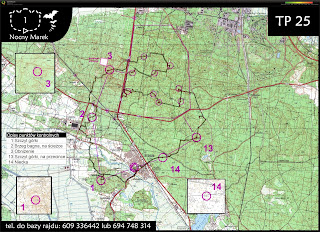 Start biegu lada chwila a tu wszyscy rozmarzeni aż ktoś nagle z boku krzyczy coś w stylu "no dalej dawać bo już biegną" i tak sobie spokojnie z Pawłem ruszyliśmy w stronę 1PK (16') gdzie zrobiło się po chwili jasno jak w dzień od ilości świecących czołówek dobijających się do punktu, zbiegamy na drogę i lecimy jak większość a gdy na działkach na końcu jednej z dróg stoi sobie dom z ogrodzeniem zmieniamy wariant na bieg przez pole i tu nasz błąd bo omijamy mokradła z lewej zamiast z prawej strony i tym samym nadkładamy drogi przez co na 2PK (29') spotykamy się z całą ekipą uczestników, ale nic to, czekamy w kolejce i lecimy na 3PK (30'), do słynnego "obniżenia terenu" z którego zbiegałem chyba szybciej niż Bolt :), przed punktem mały bieg przez las zamiast szybszą drogą ale co zabawa to zabawa, przed nami jeszcze kawałek i etap bno w formule "scorleuf", tłumacząc na polski: "co byś nie robił i tak wybierzesz złą kolejność" :).