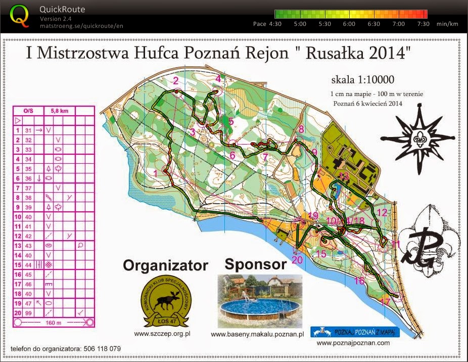 Mistrzostwa Hufca Poznań Rejon odbyły się nad jeziorem Rusałka, wzieli w nim udział harcerze między innymi z 6DH z Pobiedzisk a także zawodnicy Hadesu jak i kilku niezłych zawodników, cala trasa miała miejsce przy jeziorze Rusałka, punkty nie były zbyt trudne poza jednym na który nabiegłem ze złej strony i drzewo mi go zasłaniało, przez co chwilę tam straciłem, reszta raczej sprawnie.