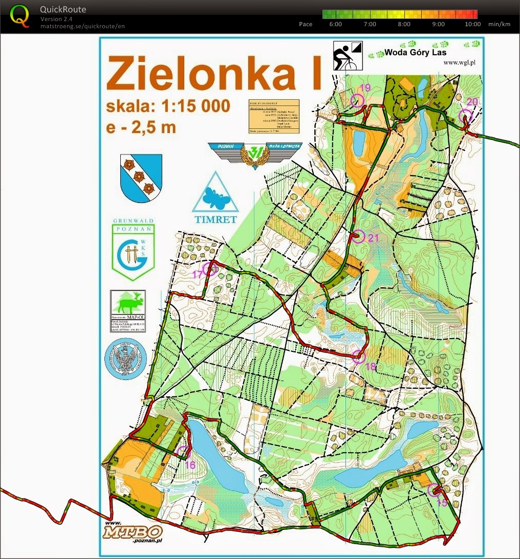 Wbiegam na mapę do BnO - "Zielonka I", i zaczynam od PK20 i PK19 dalej PK21, dalej na PK18 i zauważam że jeden z mijanych zawodników z którym od początku tej mapy się widuję biegnie nie na PK17 tylko w innym kierunku, po chwili już wiem gdzie, przez roztargnienie nie zaznaczyłem sobie punktu PK15 i musiałem skorygować swoją trasę, zamiast z PK16 biec na drugą mapę do BnO musiałem jeszcze cofnąć się po PK15 na krańcu mapy, przez co nadłożyłem sporo drogi.