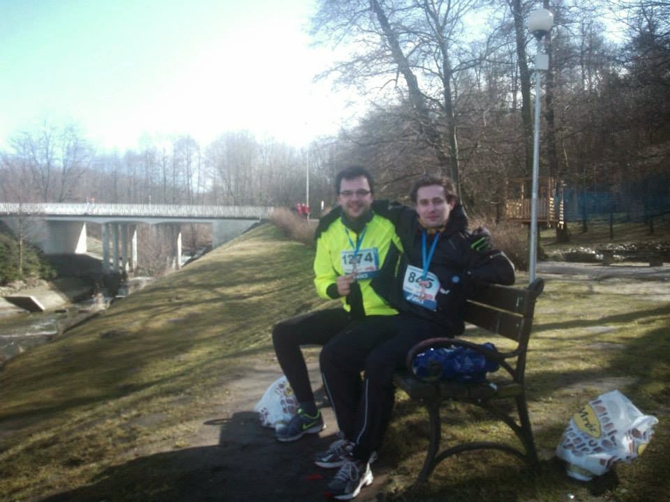 Po kolejnych dwóch kilometrach i mojej nie zamykającej się gębie, tempo spadło nam do 5:45, trzeba było trochę Szymonowi po ściemniać :) by utrzymał motywację, myślałem że wszystko zepsuł inny biegacz biegnący za nami bo gdy ja mówiłem że został już tylko kilometr on do swojego kolegi mówił że jeszcze ponad dwa :) i taka była prawda ale na szczęście Szymon tego nie słyszał i choć był już zmęczony to ostanie 2km udało się podkręcić tempo do jakiegoś 5:30 i wyprzedzić kilku zawodników, wbiegając na metę z czasem 55:59 poprawiając rekord Szymona o blisko 2 minuty.