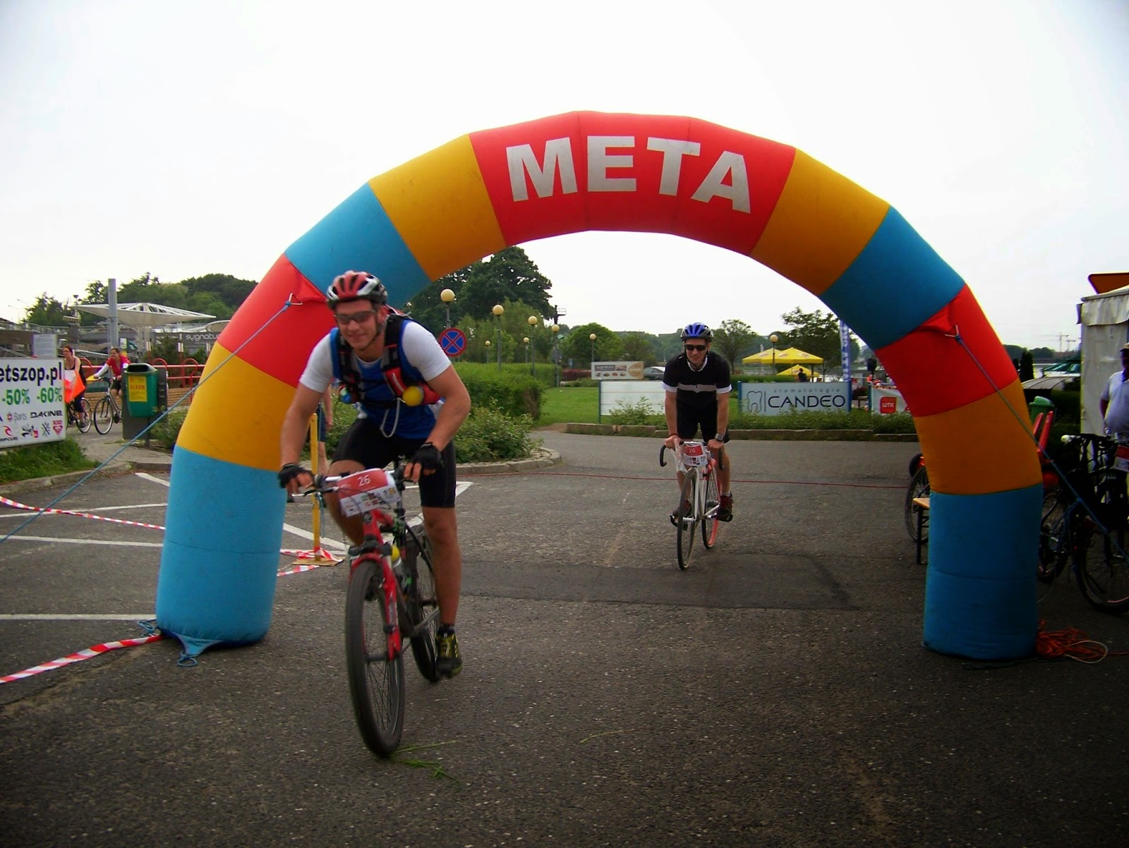 Pozostała ostatnia prosta do mety na którą wjeżdżamy z czasem 9h10m i o mały włos bo taki 3 minutowy włos do mety nie ścigalibyśmy się z Krzychem i Pawłem :)