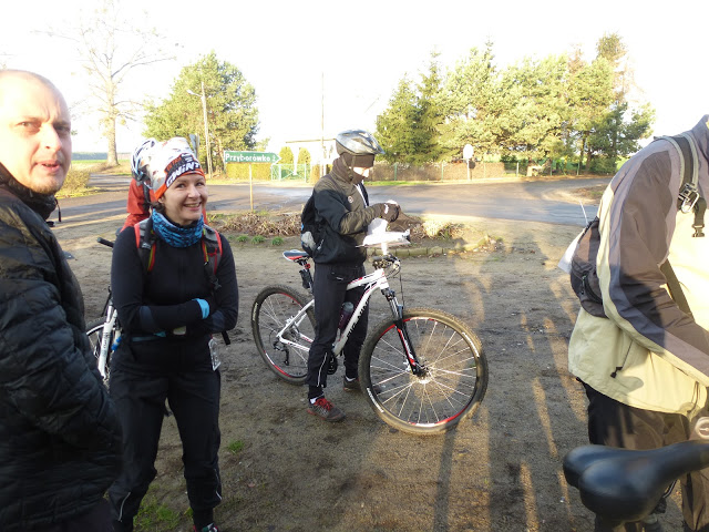 Baza zawodów mieściła się w Przyborowie, niedaleko Szamotuł skąd wszyscy wystartowaliśmy w sumie w dwóch kierunkach, nic sobie nie narzucałem, bardzo wątpiłem w to że nawet wśród tych siedmiu zawodników znajdę się na podium - zamierzałem sobie spokojnie pojeździć.Na początek postanowiłem pojechać na wschód począwszy od PK48 przy którym już okazało się że warto korzystać z wydrukowanych dodatkowych powiększeń albo czytać opisy co zemści się na mnie jeszcze później, jadę dalej zaliczając kolejno brzeg oczka wodnego PK47 i szczyt górki PK50, wjeżdżam do Pamiątkowa gdzie w okolicach jeziora mam trzy "mokre" punkty - zakręt rowu PK53, brzeg podmokłej łąki PK63 i brzeg oczka wodnego PK56 z którymi nie ma problemu, tylko na drogach zaczyna się robić więcej błota, po kolejny PK61 postanawiam dalej jechać rzez Rokietnice bo niby więcej asfaltu ale okazuje się że niekiedy asfalt jest w gorszym stanie niżeli polna droga, przed Rostworowem męczę się przy punkcie PK52 by wcisnąć kartę w przewiązany sznurkiem "perforator" po małym zdenerwowaniu odwiązuję go i podbijam kartę (może warto będzie w przyszłości wiązać je za ten naciskach a nie w miejscu znakowania).